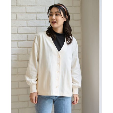 仕立て映えのする張り感のあるポンチ素材を使用したカーディガンです。袖にニュアンスが出るようなシルエットで作りました。