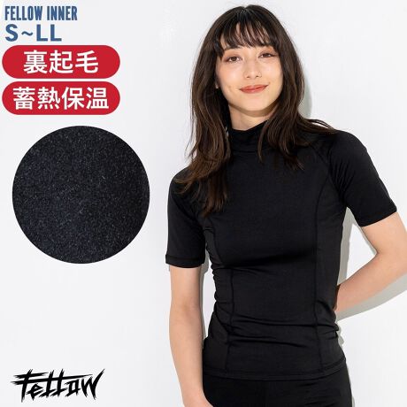 保温インナー レディース ホットラッシュガード 半袖 FELLOW裏起毛 紫外線予防 UPF50+
