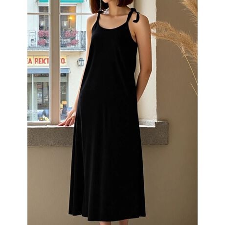 ベロア生地の光沢が上品な印象のワンピース。すっきりとしたシルエットに、リボンデザインのショルダーが女性らしい雰囲気を演出します。一枚で着用するのはもちろん、インナーにカットソーやブラウスを合わせたり様々な着こなしが楽しめるアイテムです。
