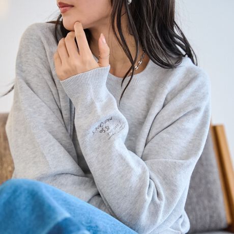 ・柔らかなライトカラーがコーデに馴染むスウェットライクプルオーバーニット