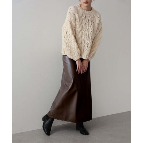 滑らかさとしっとりとした光沢のある質感を持ち合わせたレザー素材を使用したスカート。
