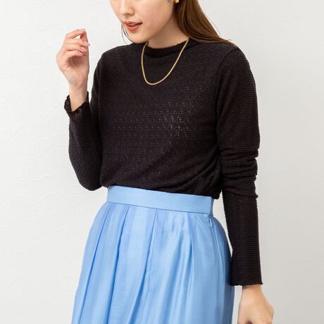 レーシー/ラメジャージハイネックプルオーバーカットソー