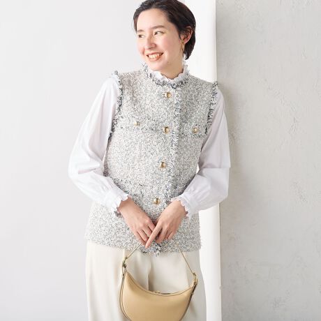 ・春らしいコーデを楽しめるツイードジレ