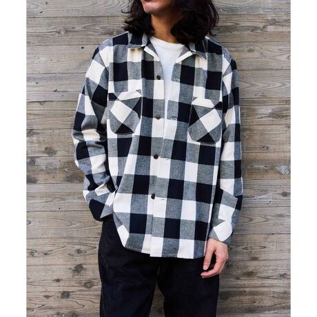 BONCOURA EX オープンカラーネルシャツ ブロックチェック