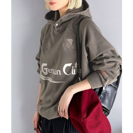 《JaVa ジャバコラボ》ヴィンテージ感たっぷり!!胸刺繍ピグメントオーバーサイズ裏起毛パーカー