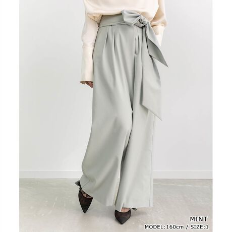 マニッシュな中に女性らしさが光るサイドタックワイドパンツ。