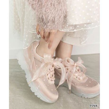 上品なシフォンリボンとハート刺繍がチャーミングなスニーカー。