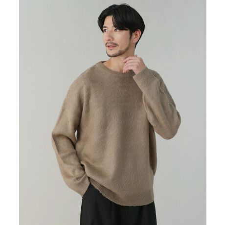 柔らかな質感とほどよいボリュームが魅力の、モヘアタッチクルーネックニット。