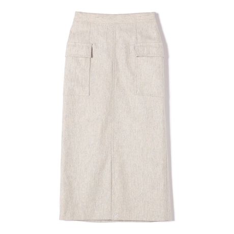 フロントに入ったスリットが女性らしい抜け感を演出し、フラップ付きのアウトポケットがポイントの今シーズンらしいアイテムです。