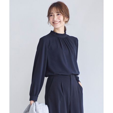 【洗える】フリルネックスタンド ブラウス