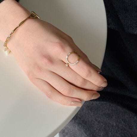 【手元にスタイリッシュな煌めきをまとうゴールド×キュービックジルコニアのリング】