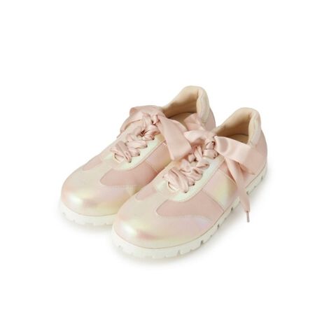 リボンが2種類ありサテンリボンにすると流行りのバレエコアにピッタリのスニーカーになります。<b