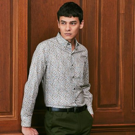 アメリカンな雰囲気のミニフラワー柄ボタンダウンシャツです。