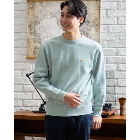 金熊刺繍のクルーネックスウェットです。柔らかく着心地のよいダブルフェイス生地を使用しています。襟部分をバインダー仕様にすることで、ヨレにくい強度の襟に改良しました。春を感じるさわやかな色合いをお楽しみ下さい。