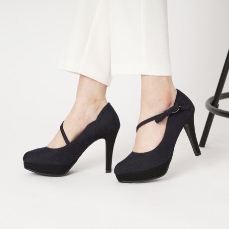 斜めストラップ厚底リボンパンプス 結婚式二次会 パーティー