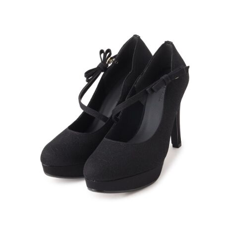 斜めストラップ厚底リボンパンプス 結婚式二次会 パーティー