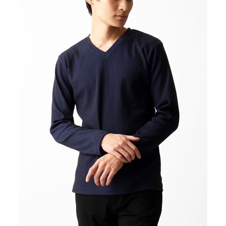 【洗える】Vネックカットソー / 2トーンプレンティング