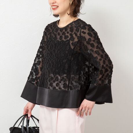 シアーフラワーカットジャガードブラウス