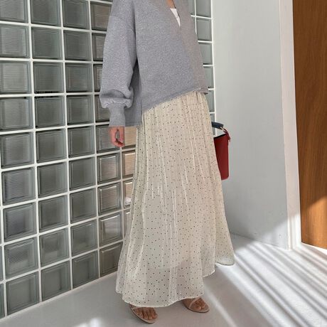 ・同素材のブラウスと合わせてワンピース風に着るのも◎