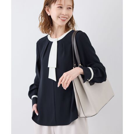 ・一枚で様になる、ボウタイ付き長袖プルオーバーブラウス。