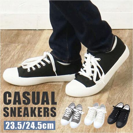 【コーデに馴染む万能アイテム】大人のカジュアルスタイルに、素敵にマッチ♪使い勝手バツグンな、スニーカーが登場!【1足あればヘビロテ間違いなし】シンプルな定番デザイン◎お出かけや旅行、レジャーなど色んなシーンで大活躍。【フィット感を高めるシューレース】紐の結び具合で多少のサイズ調節が可能。シューズと足が一体化するような着用感。【程よいクッション性で負担を軽減】ソフトなインソールが、足裏にかかる衝撃を吸収。たくさん歩いても疲れにくいのがポイント。【屈曲性があり動きを妨げない】つま先部分は、足の動きに合わせて柔軟に曲がる形状。蹴り上げやすくつまずきにくい!【安定感のある歩行をサポート】約28mmの程良い厚みがありつつ、フラットで安定感をキープ。滑りにくい底面凹凸設計。【お気に入りを選べるカラー】落ち着きのあるベーシックカラーをラインナップ。年代問わず履きこなしやすい仕上がり。