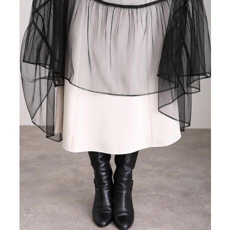 動くたびふわりと揺れるスカートが動きの感じさせ、フェミニンかつ上品な印象に。