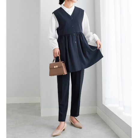 ジレを合わせてもすっきり美脚見えするテーパードシルエットに