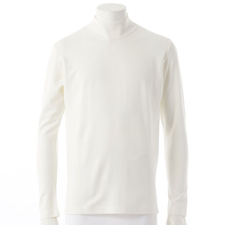 シルケットスムースの生地を使用した、非常に肌触りと着心地の良いモックネックのロングスリーブTシャツ。