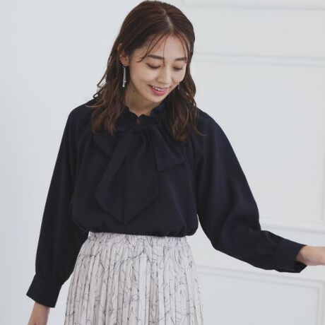 大きめのボウタイとフリルが華やかな着映えブラウス