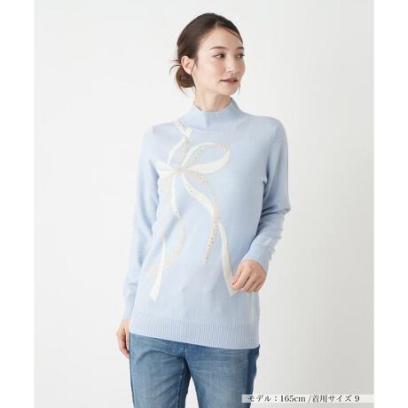 インターシャ編みで表現されたアーティスティックなリボン柄が視線を惹きつける、存在感たっぷりのハイネックニットプルオーバー。さりげなく散りばめられたホットフィットのビジューが、控えめながらも煌めきを放ち、上品なリュクス感を演出します。ネックラインや袖口はリブで適度なフィット感をプラス。カシミヤをブレンドした柔らかな素材感が、肌に優しく寄り添い、冷え込む季節にもほっとするような温もりを感じさせてくれます。------------------------------------冬ありありなしやや薄手なし-------------------------------------※商品の色味は、撮影場所や光のあたり具合、お客様のお使いの機器により色味が違って見える場合がございます。予めご了承ください。■□Leilian WHITE LABEL(ホワイトレーベル)・・・実力派デザイナーとの協業で、ベーシックな商品によりトレンド性を取り入れたブランドです。□■