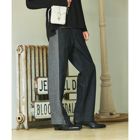 同素材の生地を二つの異なるフェードカラーに仕上げて組み合わせたワイドデニム。バイカラーの見た目はセットアップで着用するとよりデザインが際立ちます。ライトオンスできれいな落ち感が上品なワイドシルエットに。