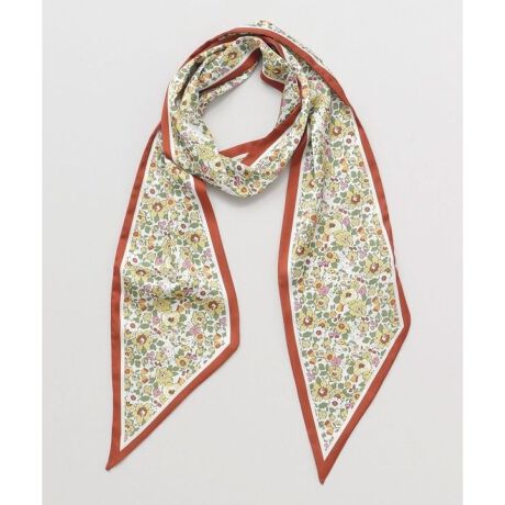 優しい色合いがレトロな雰囲気のロングスカーフ。ダブルフェイスのスカーフなので、首に巻くのはもちろん、ヘアリボンやバッグに結んでワンポイントアクセサリーとして使ってもおしゃれ。ベルトループに通してウェストマークするのもおすすめです。