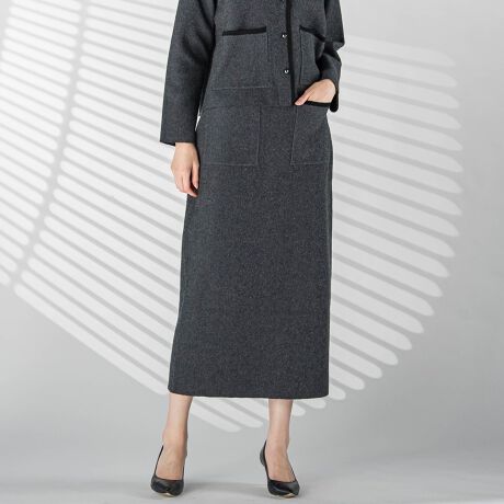 シャープな印象仕上がるペンシルラインのニットスカート。