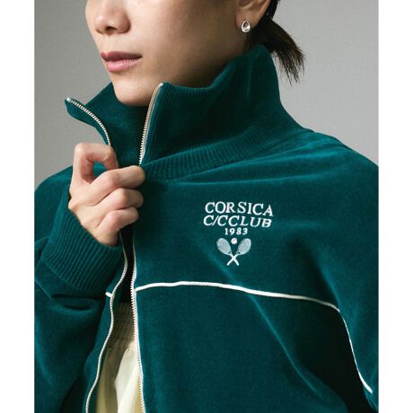■デザイン/シルエットテニスクラブののロゴを胸元に刺繍したカレッジテイストのジップブルゾン。配色のラインがデザインのポイントになっています。?裾はコードで調整可能でシルエットに変化を付けられ、コンパクトな着こなしも楽しめます。衿はジップを上まで上げるとスタンドカラーの様にもなるので小顔効果に◎カーディガン感覚で軽く羽織れるブルゾンです。?毎年人気の(15ホワイト)MILK/ミルク、(01ブラック)BLACKBERRY/ブラックベリーと?25ss新色の(30グリーン)SAGE/セージを加えた3色展開です。?
