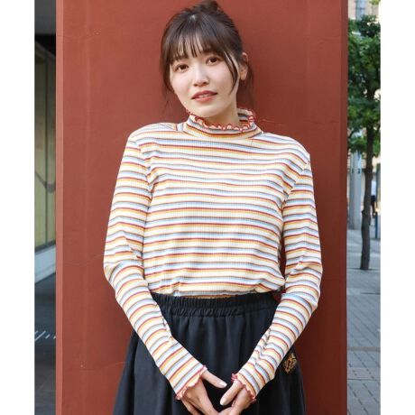 ちょっぴりレトロな雰囲気が漂う、マルチボーダーのタートルネックインナー。