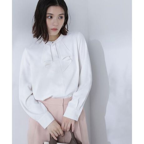 オンオフ問わないベーシックなデザインのキレイめブラウスです。襟元にあしらった、キラリと光るゴールドカラーの釦とフリルデザインが華やかな印象のデザイン。ジャケットインした時に首元のデザインが映えて上品に着ていただけます。<素材>肌触りが心地よい合繊素材を使用。ジョーゼットの表面が上品なトロミ素材で、シワになりにくく取り扱いやすい合繊素材です。<詳細>仕様・前ボタン裏地・なし透け感・ややあり / 光沢・なし / 伸縮性・なし 生地の厚さ・普通※モデルの着用画像の場合、光の当たり具合により、実際の色味と異なって見えることがございます。色味は、商品単体の画像をご参照ください。