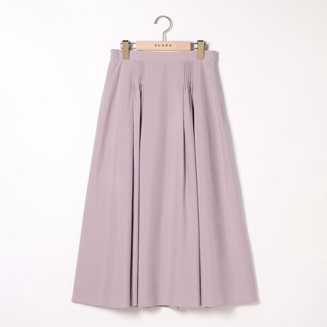 薄手で滑らかなタッチのライトタフタ生地で仕立てたスカートです。落ち着いた膝下のフレアミディシルエットが大人の女性らしさを演出します。ウエストに丁寧にピンタックを施した、手の込んだつくりも魅力の1着。バックウエストがゴム仕様で、締め付け感を軽減し快適な着用感を味わえるのもポイントです。