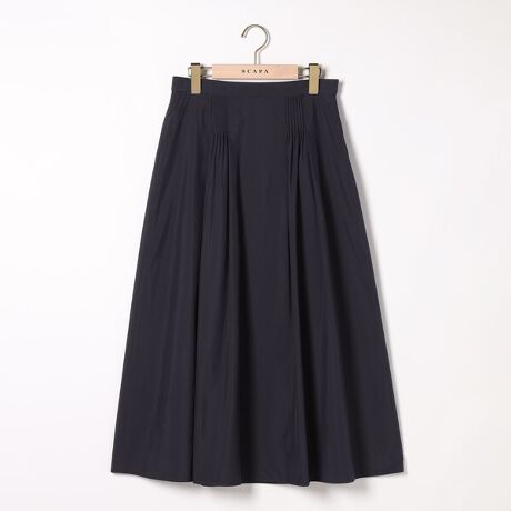 薄手で滑らかなタッチのライトタフタ生地で仕立てたスカートです。落ち着いた膝下のフレアミディシルエットが大人の女性らしさを演出します。ウエストに丁寧にピンタックを施した、手の込んだつくりも魅力の1着。バックウエストがゴム仕様で、締め付け感を軽減し快適な着用感を味わえるのもポイントです。