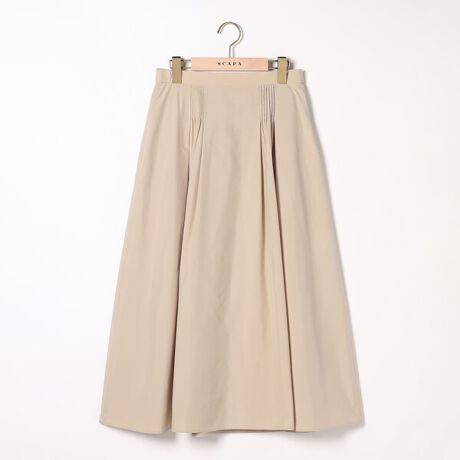 薄手で滑らかなタッチのライトタフタ生地で仕立てたスカートです。落ち着いた膝下のフレアミディシルエットが大人の女性らしさを演出します。ウエストに丁寧にピンタックを施した、手の込んだつくりも魅力の1着。バックウエストがゴム仕様で、締め付け感を軽減し快適な着用感を味わえるのもポイントです。