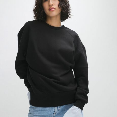 ゆったりとしたしたサイズ感で着回し力のある一着。大人見えする優しいカラーがスタイリングに取り入れやすいショルダーフォルムミドルスウェット