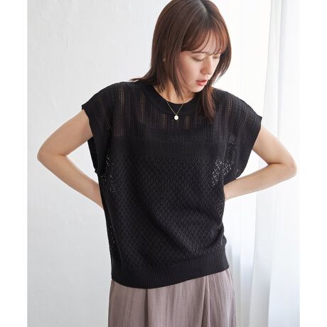 ほど良い肌見せが叶う、ドライタッチな透かし編みニットプルオーバー。