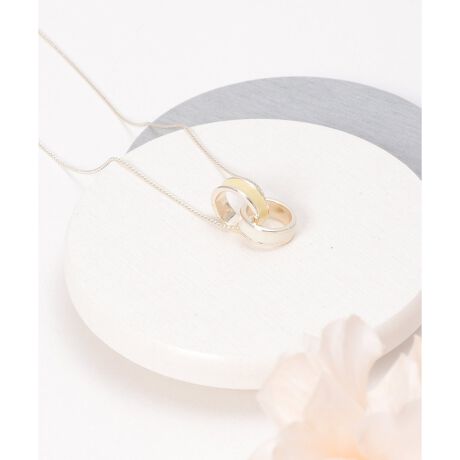 [型番:12811294]2つのリングが重なり合う、バイカラーデザインのネックレス。異なるトーンのリングが生み出すコントラストが、シンプルながらも印象的な存在感を演出します。