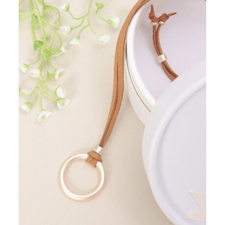やわらかなフェイクスエード紐に、大ぶりのリングトップを合わせた存在感たっぷりのネックレス。