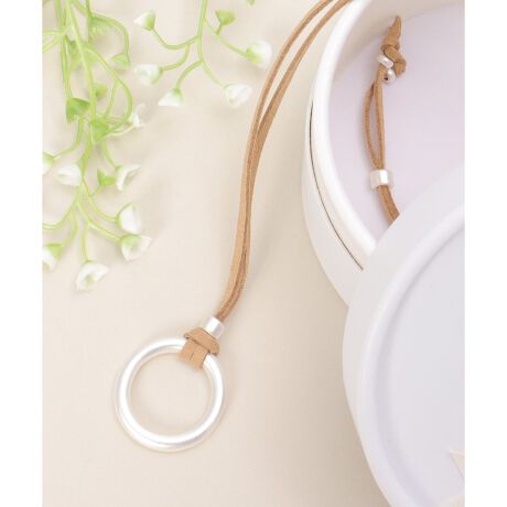 やわらかなフェイクスエード紐に、大ぶりのリングトップを合わせた存在感たっぷりのネックレス。