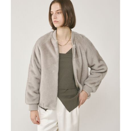 ミンク風のエレガントなフェイクファーでお作りしたブルゾン。毛並みや肌触り、柔らかさにニュアンスのあるカラーなど質感のリアルさを追求したリュクスな素材を使用。スポーティなブルゾンタイプに仕上げる事でデイリー使いしやすく、大人のカジュアルスタイルに溶け込む日常にもぴったりな一着に仕上げました。適度なボリュームやゆったりとしたシルエットで仕上げつつも、着膨れしない所が拘りポイント。さっと羽織るだけで旬の着こなしをお楽しみいただけます。