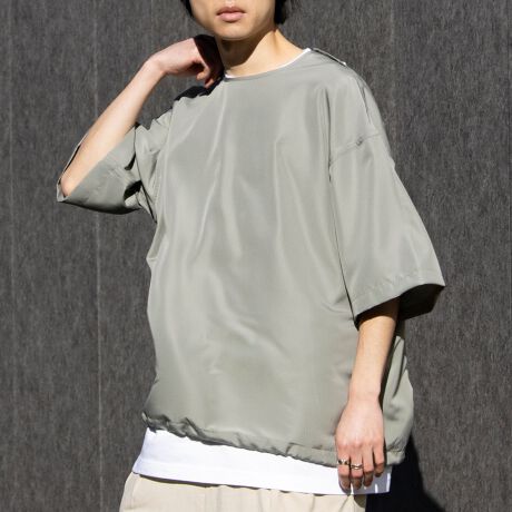 さらには裾にドローコードが付き、シルエットの変化も出せる、見た目はシックですが機能的な面も魅せるTシャツです。