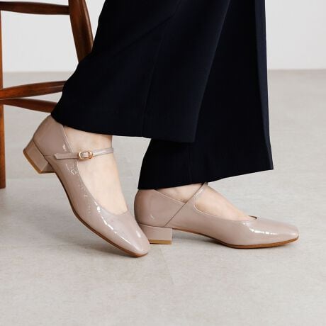 今っぽさ漂うクラシカルなスクエアトゥのメリージェーンパンプス。