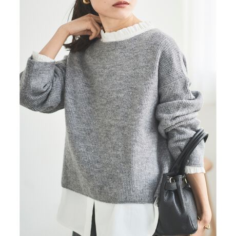 アウターの中に着やすい肉感で柔らかく軽い着心地のニット。