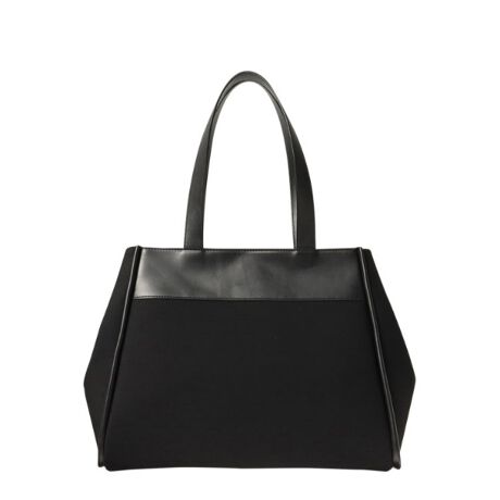 ファブリック素材を使い軽量でありながら、レザーのパイピングデザインによってシックで上品な印象に仕上げた横型トートバッグです。