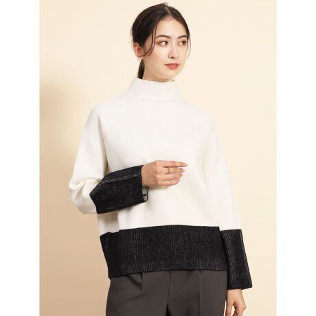 袖口と裾のバイカラーがポイントのプルオーバーニット。
